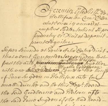The recorded deposition of Jeremy Gledhill, 1701. Image: Borthwick Institute for Archives.